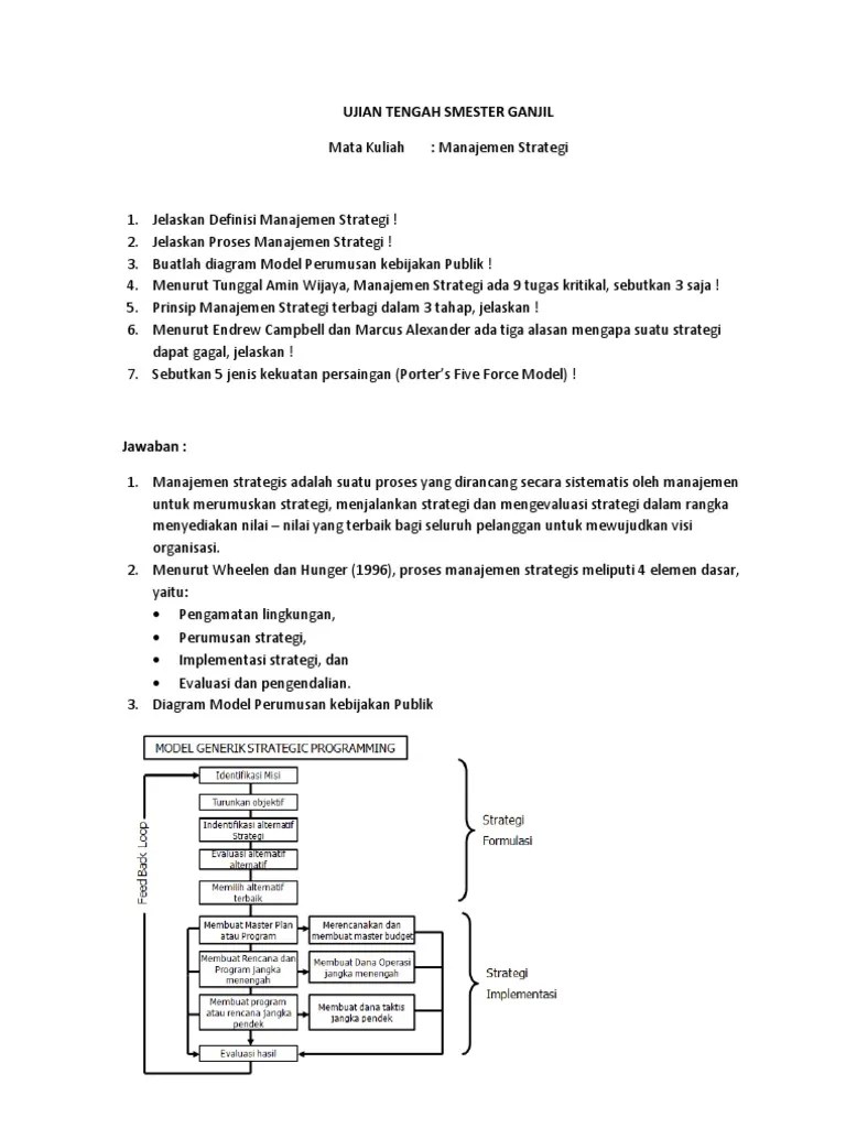 Yang membuat organisasi dapat memperoleh tujuannya (f red r. Namun sejalan dengan berkembangnya manajemen strategik, strategi juga merupakan penetapan tujuan yang diinginkan oleh perusahaaan itu sendiri. Oleh karena itu, perusahaan harus memahami berbagai strategi manajemen dengan berbagai karakteristiknya, sehingga mampu mampu memilih strategi yang tepat dan mampu menggunakan strategi manajemen yang bervariasi sesuai dengan tujuan. Contoh soal essay konsep dasar ilmu ekonomi beserta jawabannya. manajemen strategik dampak virus corona pada strategi di industri pariwisata (pt. manajemen strategis fred r david ppt download. Sedangkan pengertian manajemen strategi menurut hadar nawawi adalah perencanaan. Pergaulan bebas di kalangan pelajar b. kunci jawaban financial accounting ifrs edition 3e chapter 13. Dengan adanya soal latihan ini semoga bisa sebagai bahan pembelajaran dan latihan sebelum menghadapi ujian. Soal dan jawaban administrasi umum kelas 10 semester 1 guru ilmu sosial. "manajemen startegi adalah senidan ilmu untuk memformulasikan. Sekali suatu strategi diterima, perencanaan untuk strategi tersebut menyusul secara sistematis.
