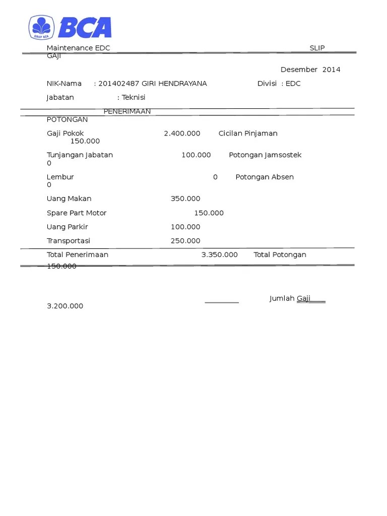 Salah satu dokumen penting yang mutlak ada dalam setiap unit usaha yang mempekerjakan karyawan adalah slip gaji. Dapatkan contoh slip gaji karyawan, cara membuat dan download file nya . Slip gaji karyawan adalah komponen penting yang diberikan perusahaan. Perhatikan contoh slip gaji karyawan berikut ini! Slip gaji merupakan sebuah dokumen resmi yang memuat informasi jumlah pendapatan atau gaji yang karyawan terima.